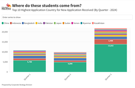 近日,马来西亚教育全球服务中心(EMGS)发布了其2024年前三季度最新的留学申请统计数据。截至2024年前三季度,中心共接收了54,150份马来西亚留学的申请。