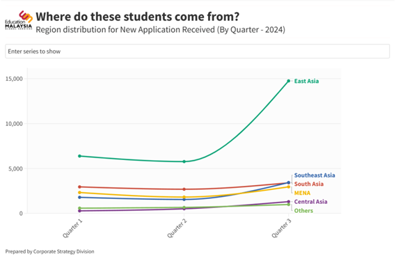 根据数据显示, 2024年前三季度马来西亚留学申请人数已超往年整年的申请人数,这预示着马来西亚在全球留学市场上的热度正持续升温。